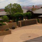 Luxury home nestled in a desert landscape with red rock formations.